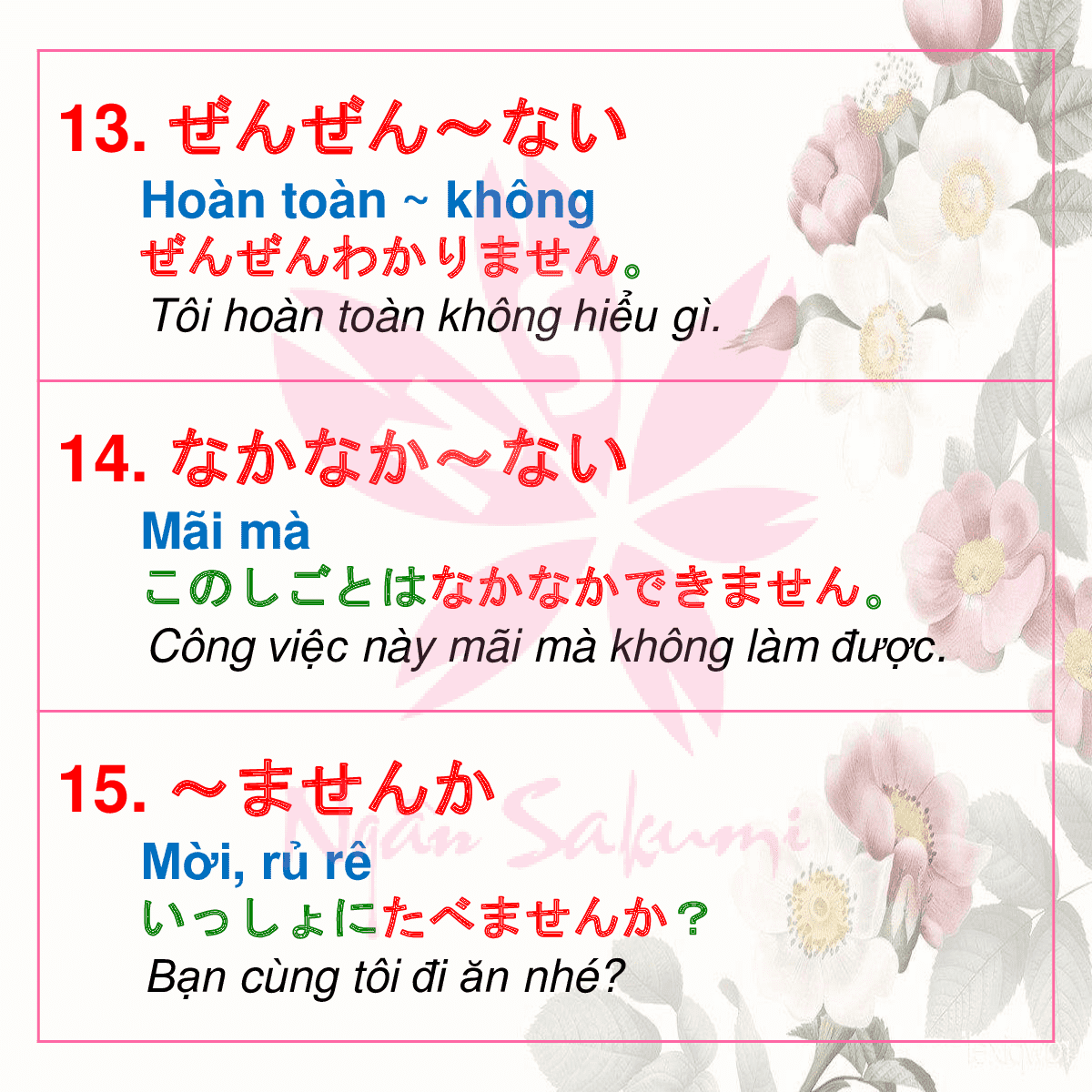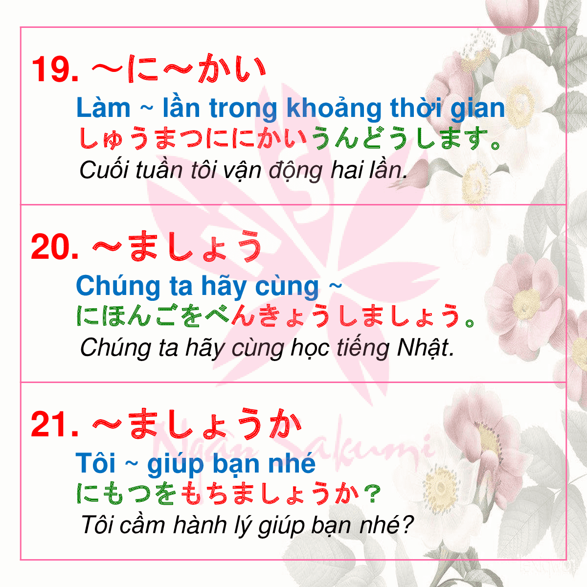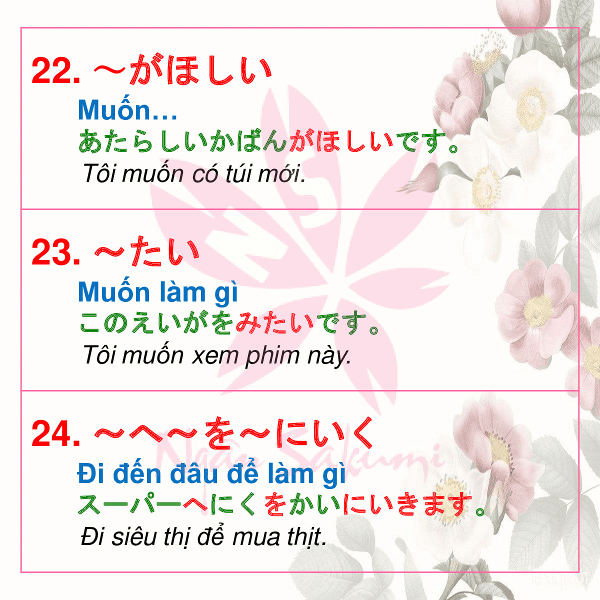 Ôn nhanh 60 Ngữ Pháp JLPT N5: Phần 2