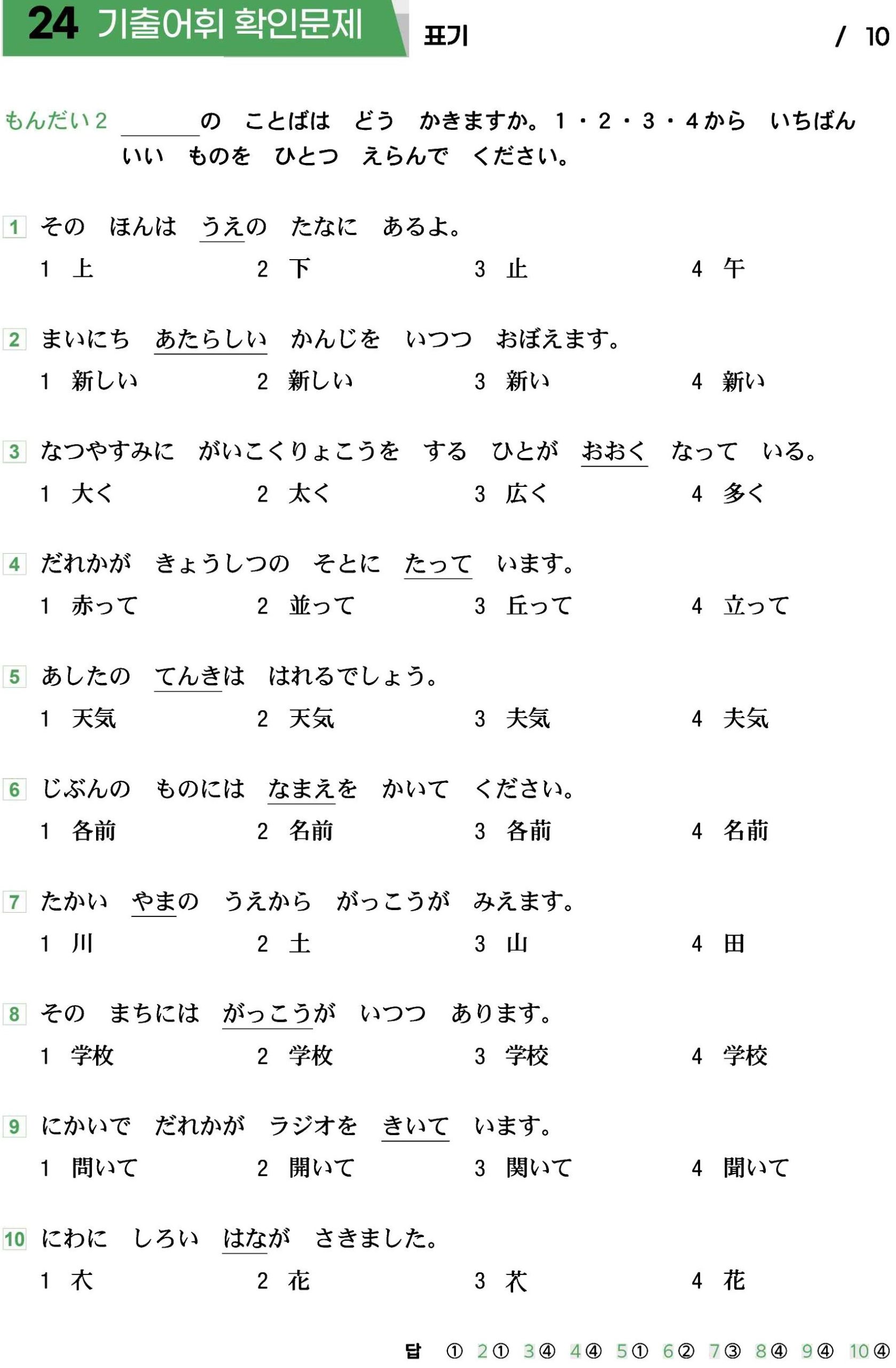 Bài tập Kanji JLPT N5: Phần 12 (Có đáp án)