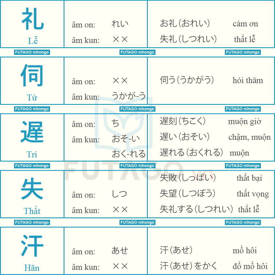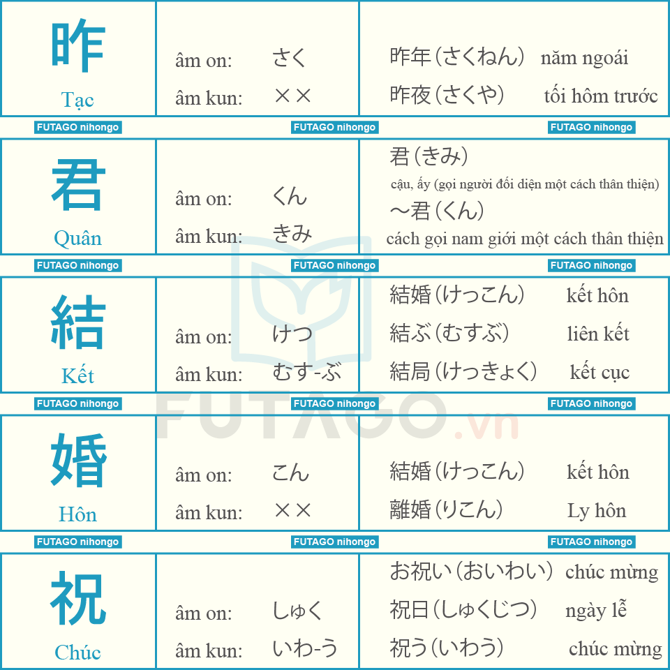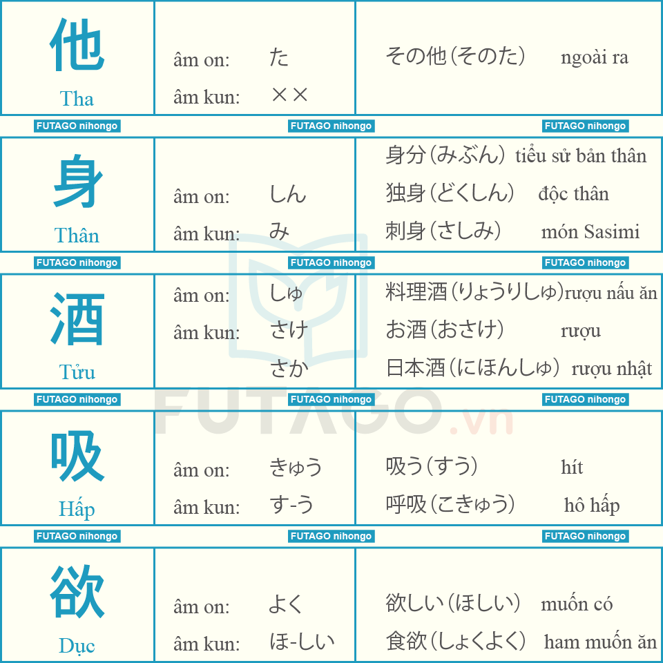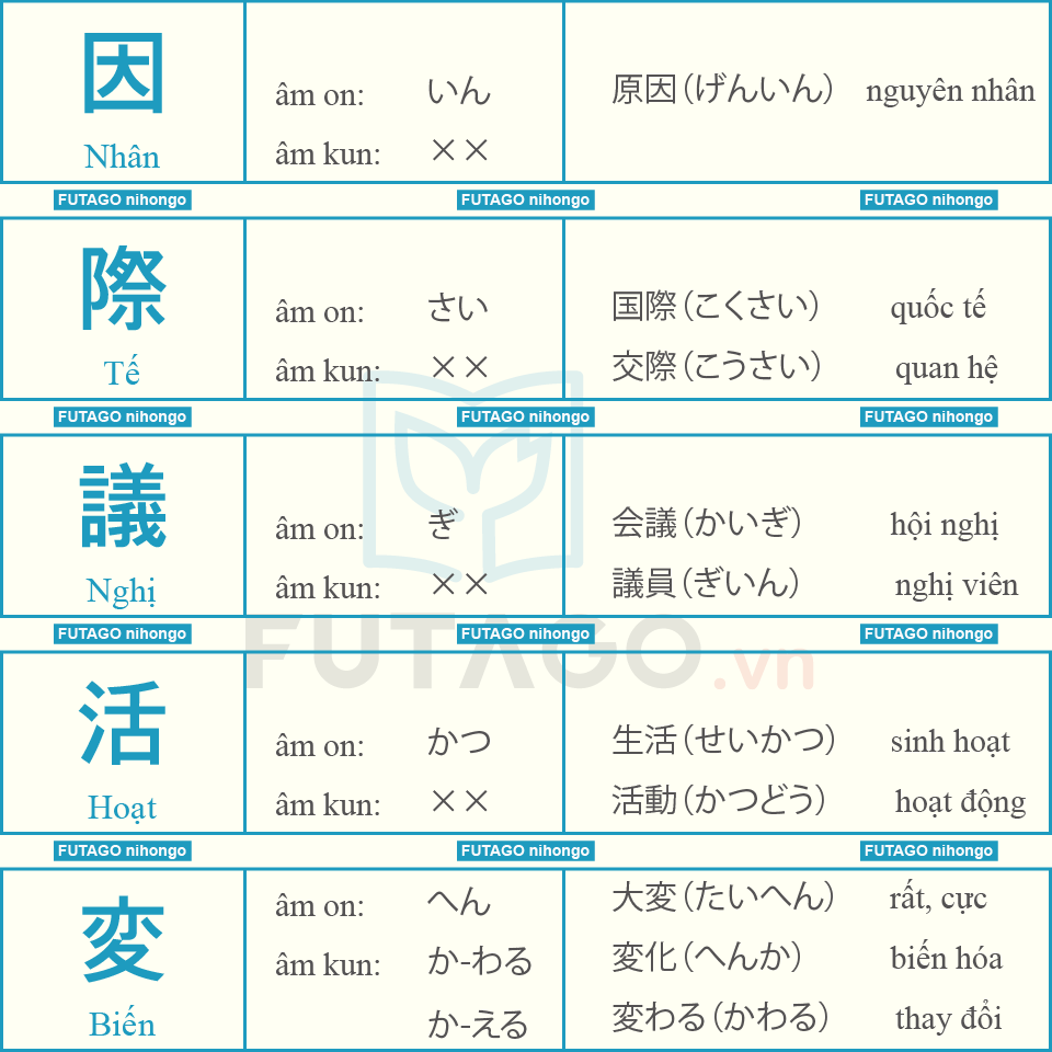 Tổng hợp 335 Từ Kanji N3 và các từ liên quan.
