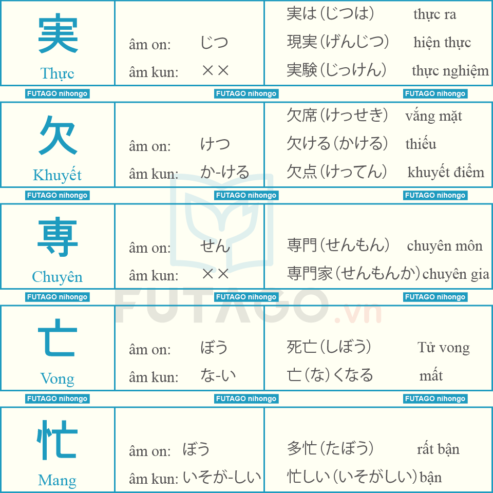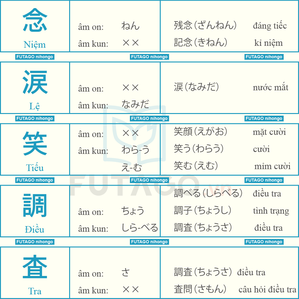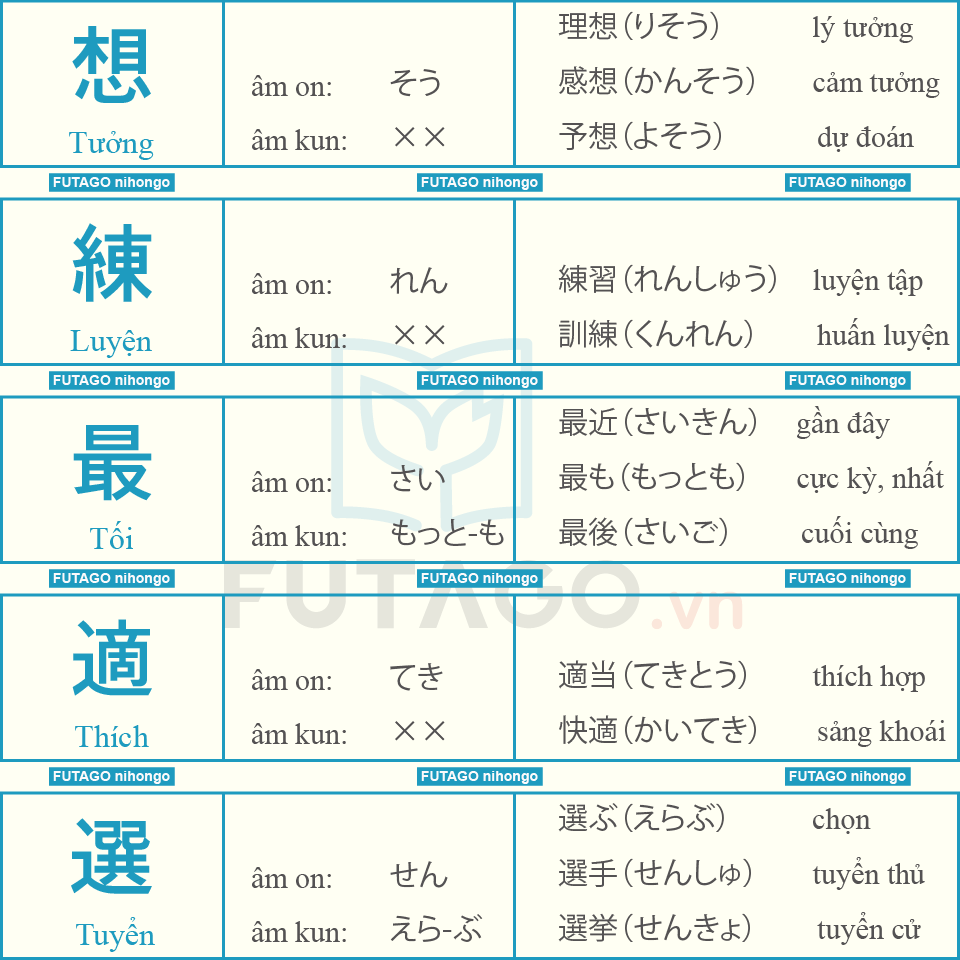 Tổng hợp 335 Từ Kanji N3 và các từ liên quan.