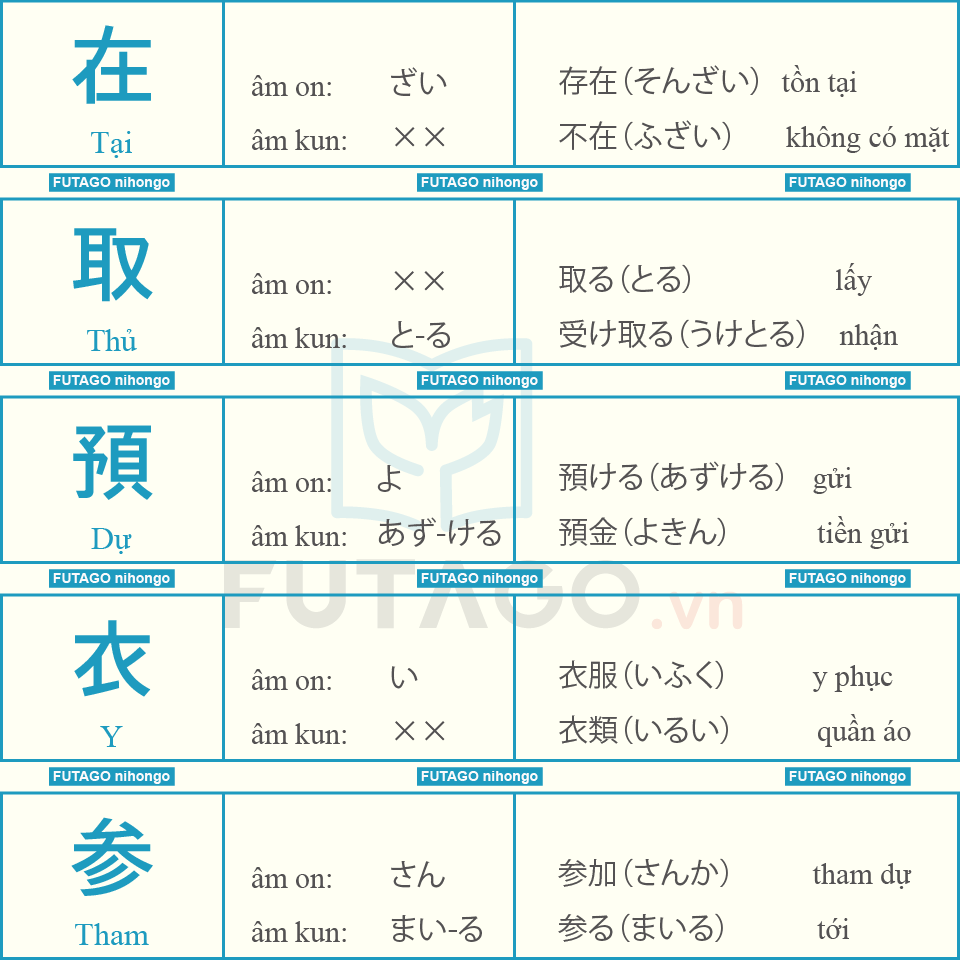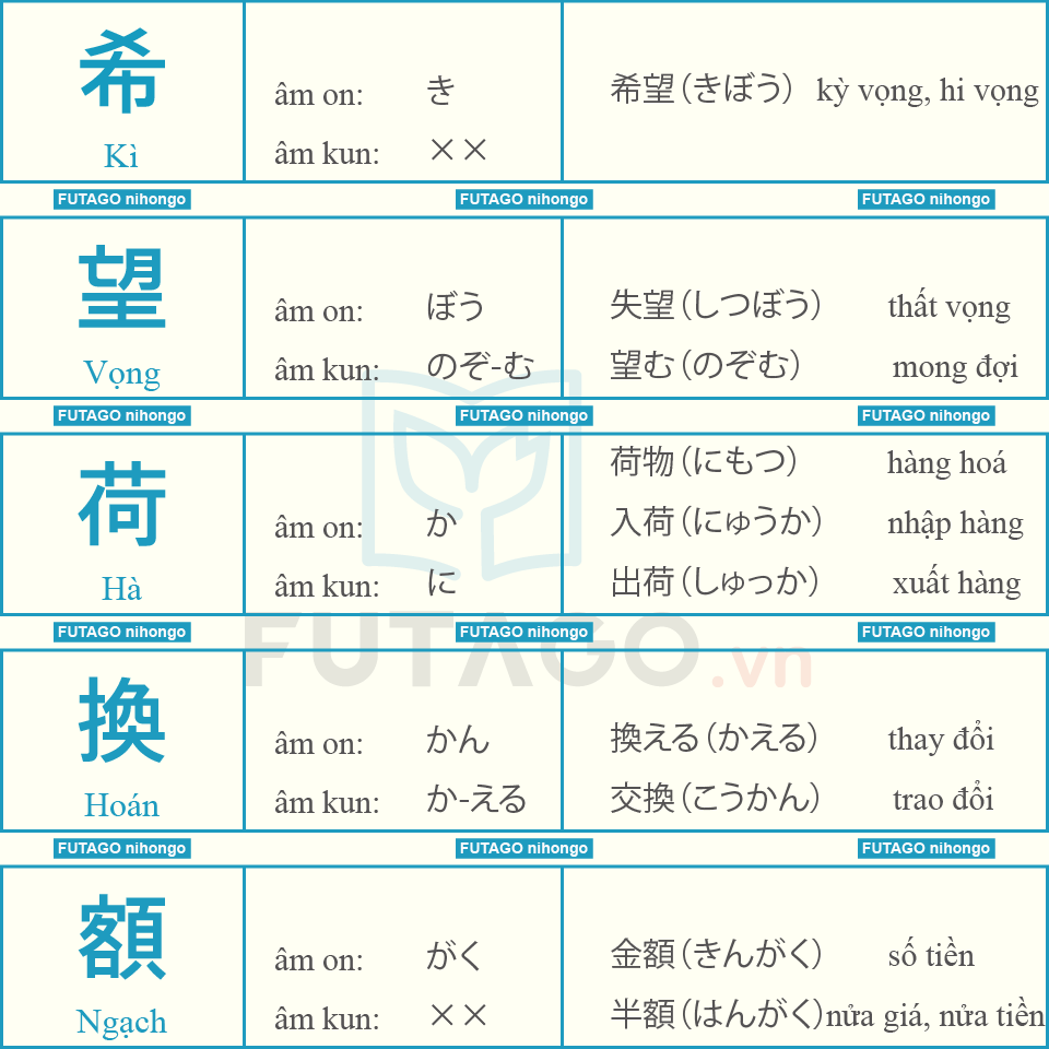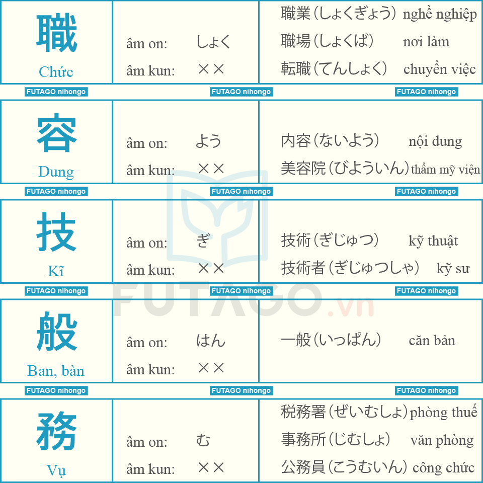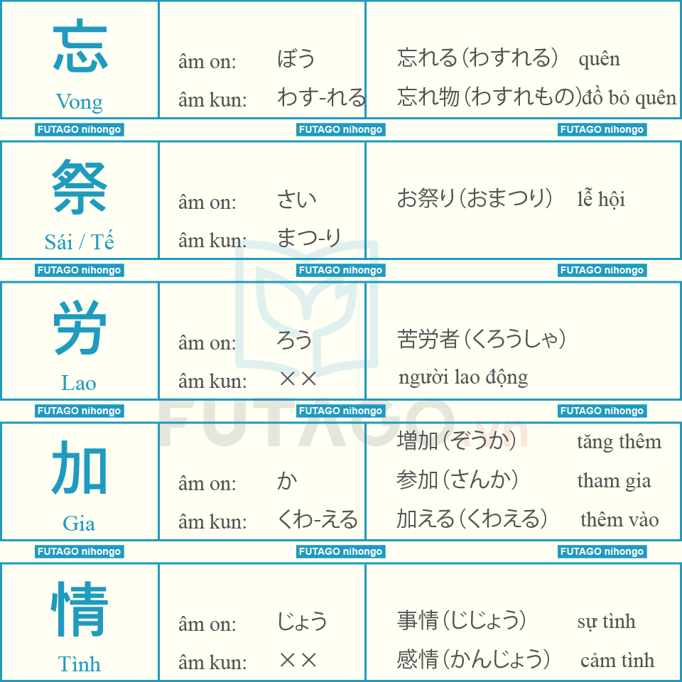 Tổng hợp 335 Từ Kanji N3 và các từ liên quan.