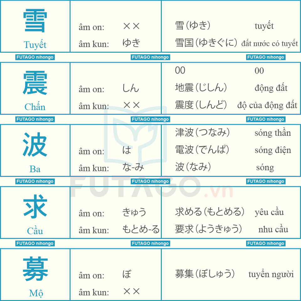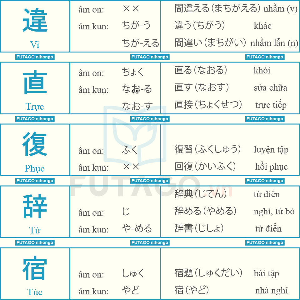 Học 335 Kanji N3 và Từ liên quan: Phần 5
