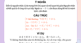 Ngữ pháp tiếng Nhật chi Nguyên nhân – Kết quả Tổng hợp các mẫn ngữ pháp Nguyên nhân – Kết quả trong tiếng Nhật. Xem thêm: Trợ Từ diễn tả nguyên nhân trong Tiếng Nhật Từ vựng tiếng Nhật chuyên ngành ô tô