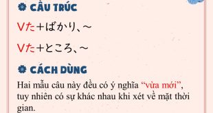 Phân biệt ngữ pháp tiếng Nhật: ~たばかり và ~たところ Trong bài này chúng ta sẽ cùng học cách phân biết 2 mẫu cấu trúc ngữ pháp tiếng Nhật: ~たばかり và ~たところ Xem thêm: Các mẫu ngữ pháp tiếng Nhật đi với thể て Tổng hợp cặp từ Trái Nghĩa N3